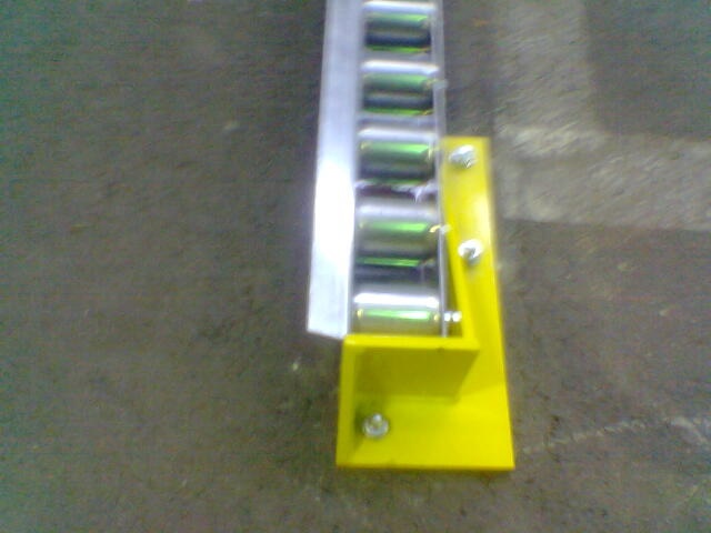 Koncový doraz k válečkové liště pro palety, umístěné na zemi, s manuálním posunem.